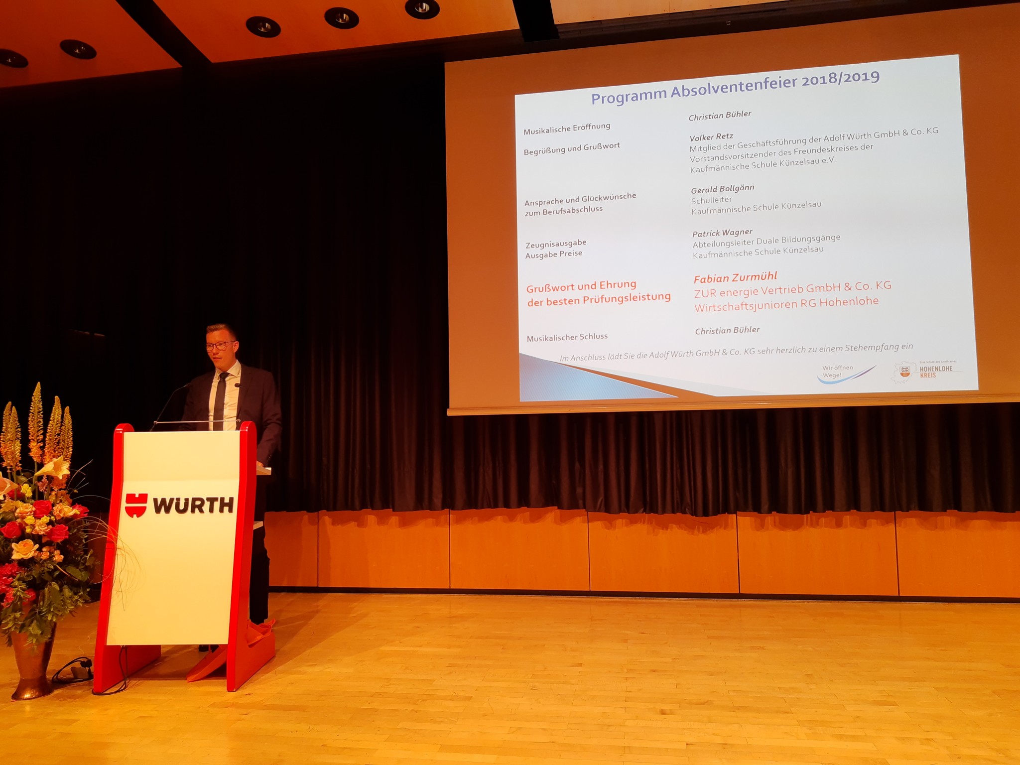Abschlussfeier_TZ_2019 (19) ← Zurück Weiter → Fabian Zurmühl von der ZUR energie Vertrieb GmbH & Co. KG