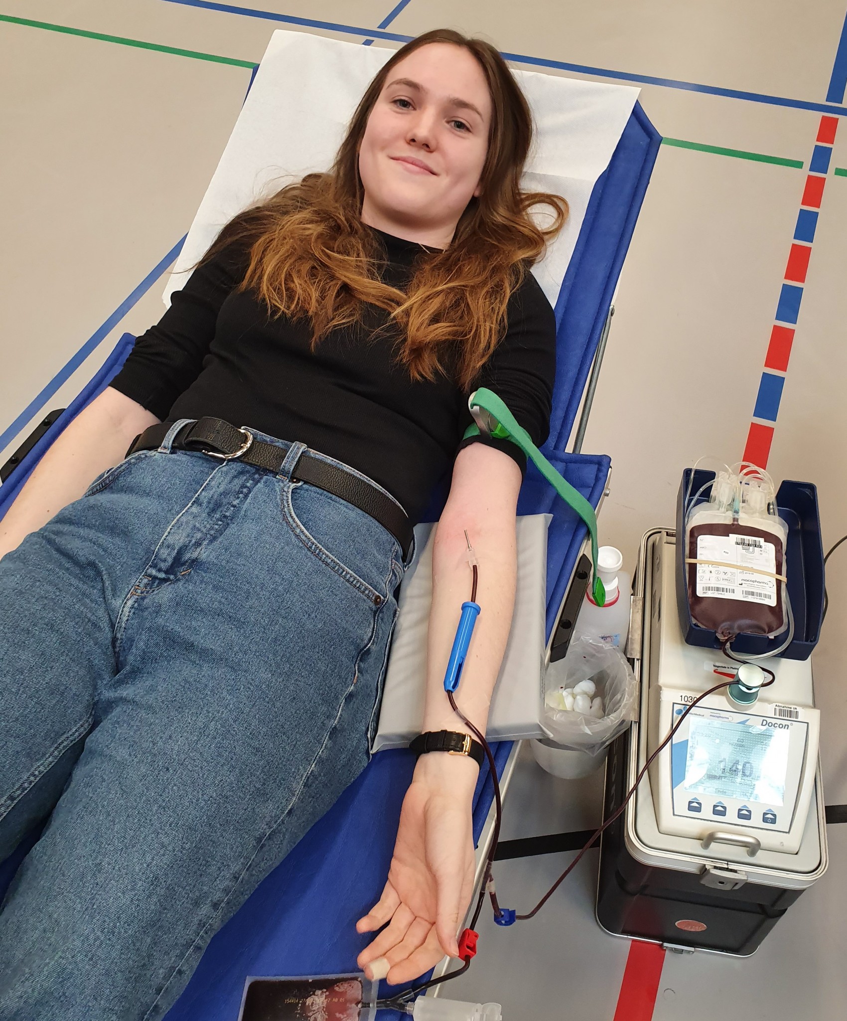 Die Spendenwillige ist ganz entspannt