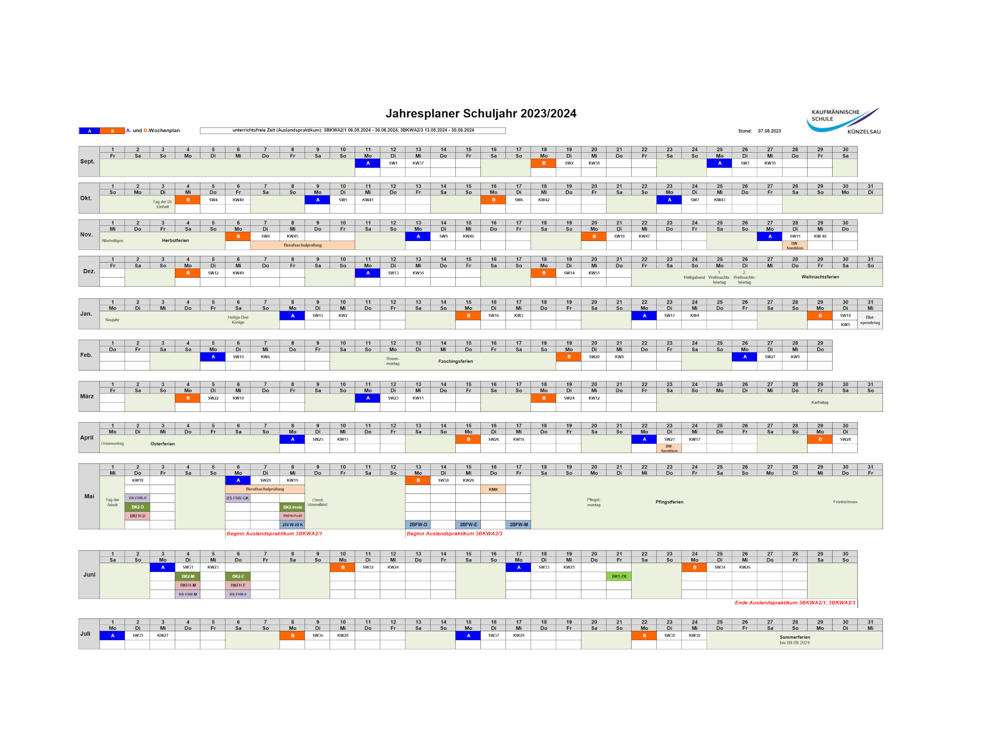 • Prüfungstermine Berufsschule / Teilzeit